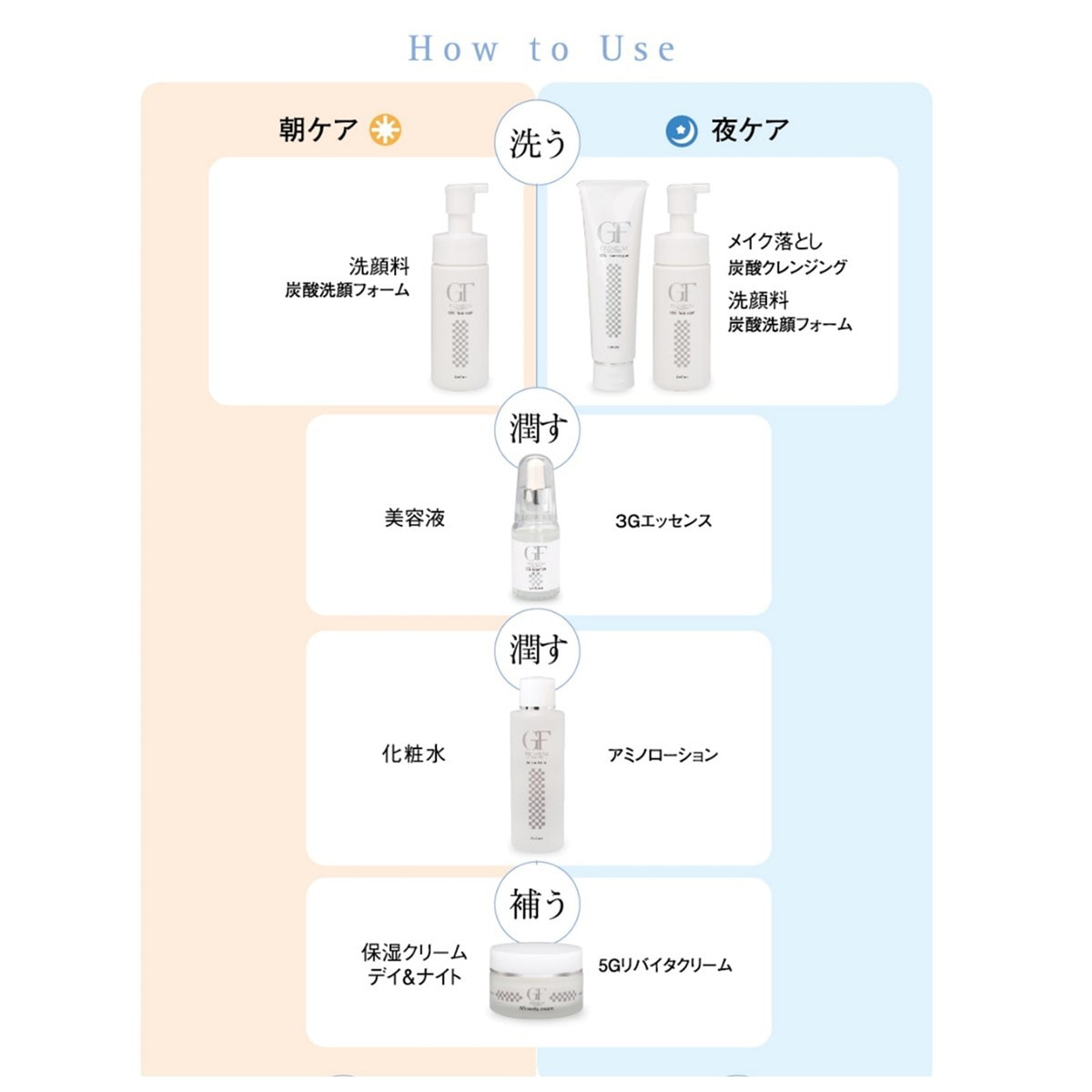 乾いた手のひらに適量(サクランボ大)を取り、顔全体にのばし、マッサージするようになじませ、ファンデーションなどのメイク汚れを浮き上がらせてから、水かぬるま湯で洗い流して下さい。