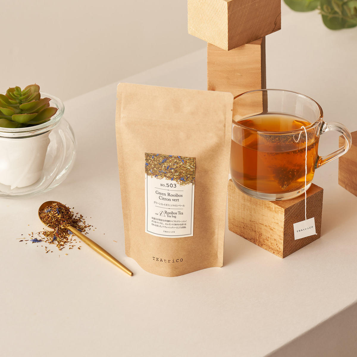 栄養分が豊富な非発酵タイプのグリーンルイボスをベースに、エレガントで爽やかな香りを合わせました。