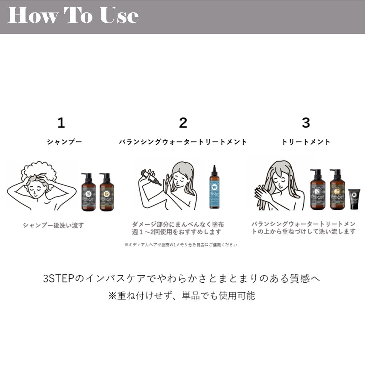 バランシングウォータートリートメントの上から重ねづけして洗い流します