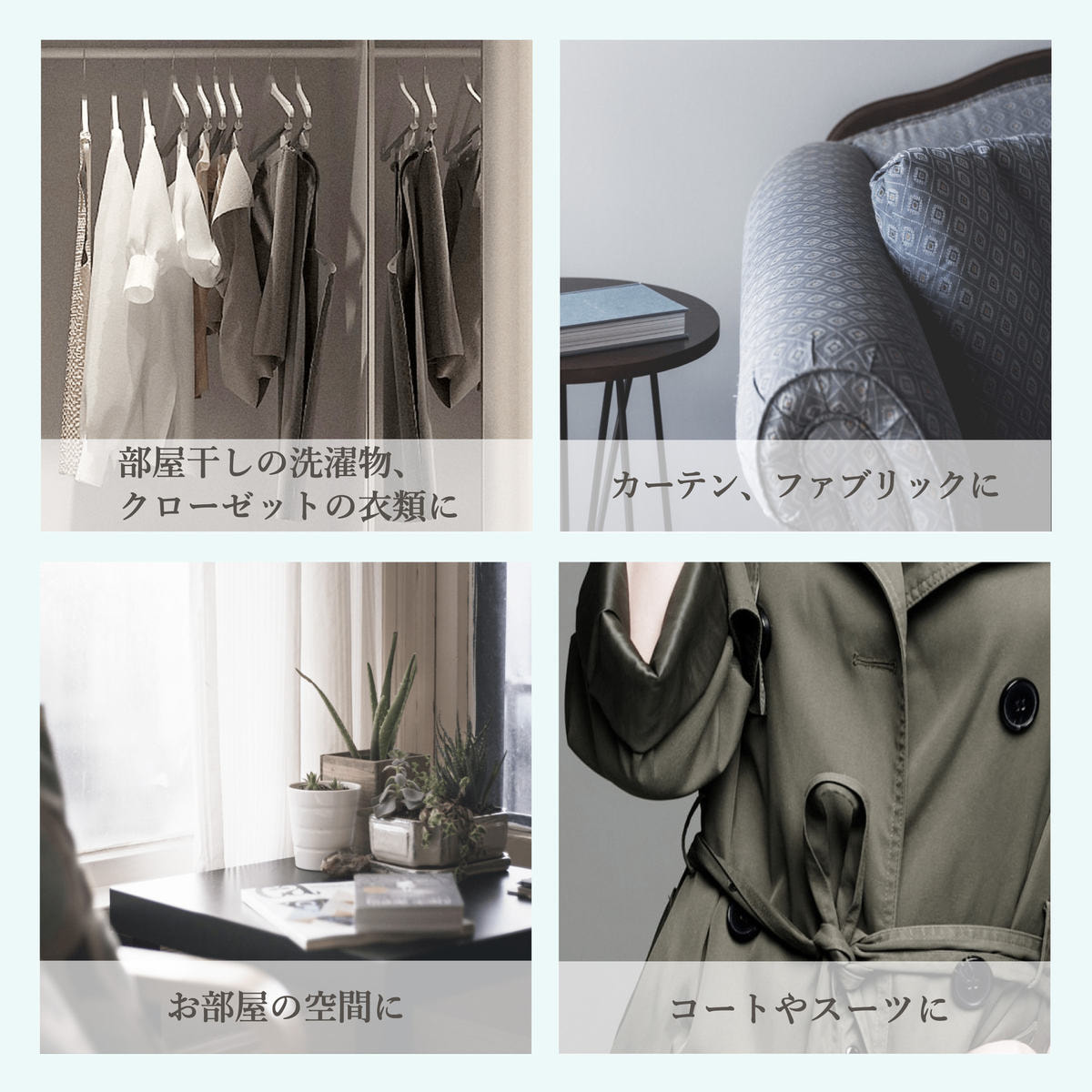 <お部屋の消臭に>お部屋の換気をしてから、空気中に4~5回(1部屋あたり)スプレーしてください。心地よい香りが広がります。